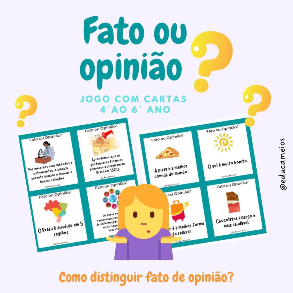 Este jogo traz várias afirmações com o objetivo de distinguir fato de opinião.